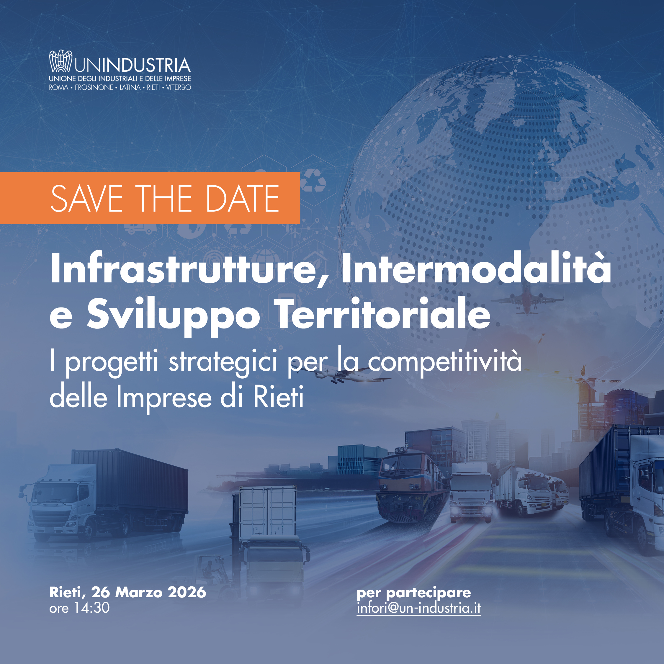 Lo sviluppo economico del territorio reatino è strettamente legato alla sua capacità di connettersi in modo efficiente con i mercati e le grandi direttrici nazionali, per Unindustria questa è una tematica centrale. A tal proposito, per superare la distanza tra la pianificazione sulla carta e le necessità operative, abbiamo organizzato un momento di confronto diretto con i principali player nazionali della mobilità e con le istituzioni regionali, per giovedì 26 marzo alle ore 14:30 a Rieti.