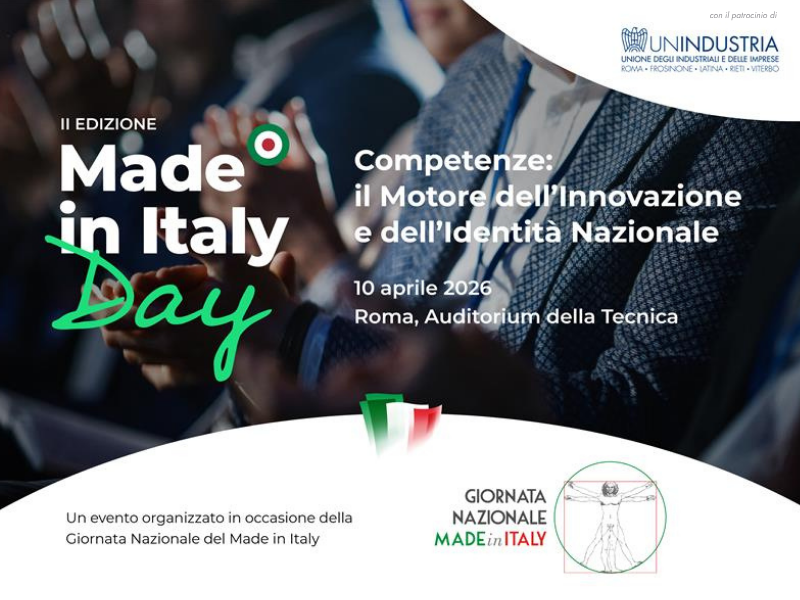 II edizione del `Made in Italy Day` con il patrocinio di Unindustria: venerdì 10 aprile alle ore 9.30 in Confindustria - Auditorium della Tecnica (Viale Umberto Tupini, 65 - Roma)