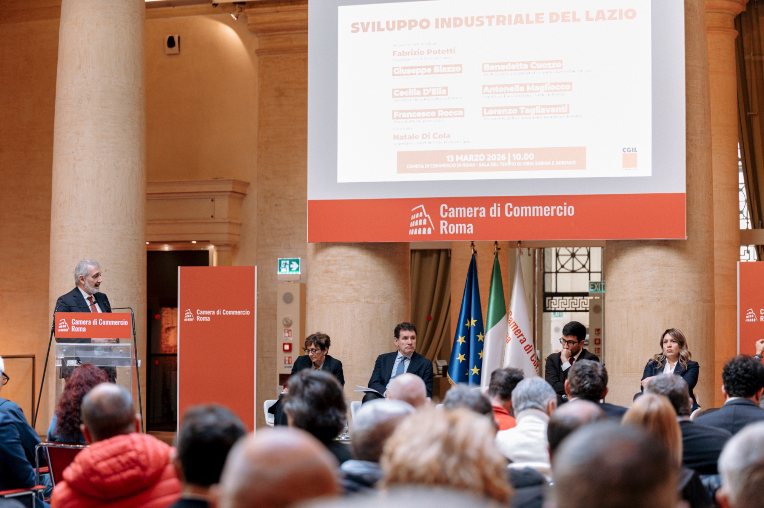 Il presidente di Unindustria, Giuseppe Biazzo, è intervenuto oggi alla Sala del Tempio di Vibia Sabina e Adriano, sede della Camera di Commercio di Roma, in occasione dell'evento sullo sviluppo industriale del Lazio promosso da CGIL Roma e Lazio.