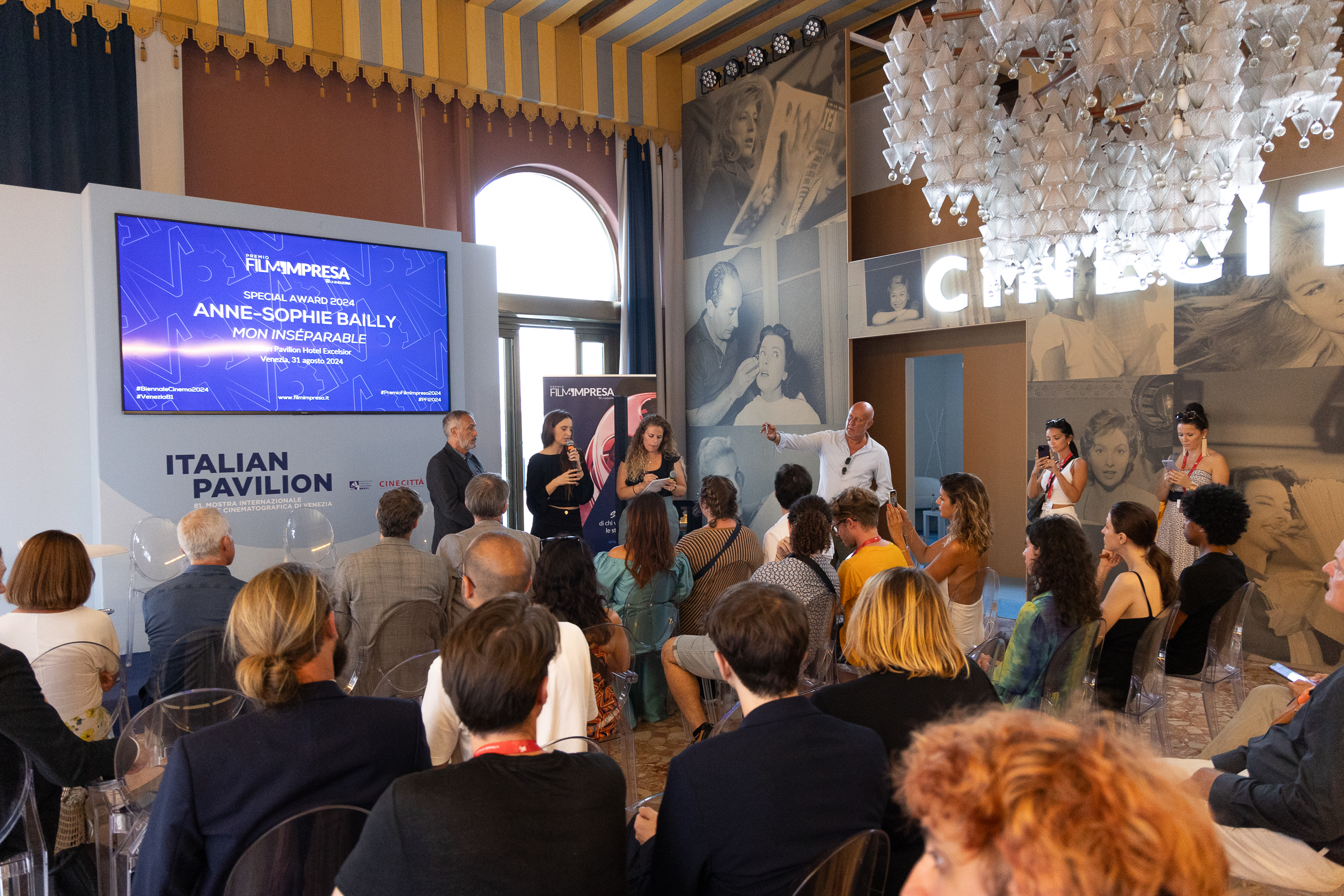 La regista francese Anne-Sophie Bailly, in concorso all’ottantunesima edizione della Mostra Internazionale d’Arte Cinematografica a Venezia con il film “Mon Inséparable”, ha ricevuto lo Special Award del Premio Film Impresa dal Presidente del Premio Film Impresa Giampaolo Letta e dal Direttore Artistico Mario Sesti. La cerimonia si è tenuta sabato 31 agosto presso lo spazio Italian Pavillion Tropicana 2 di Cinecittà all’Hotel Excelsior.