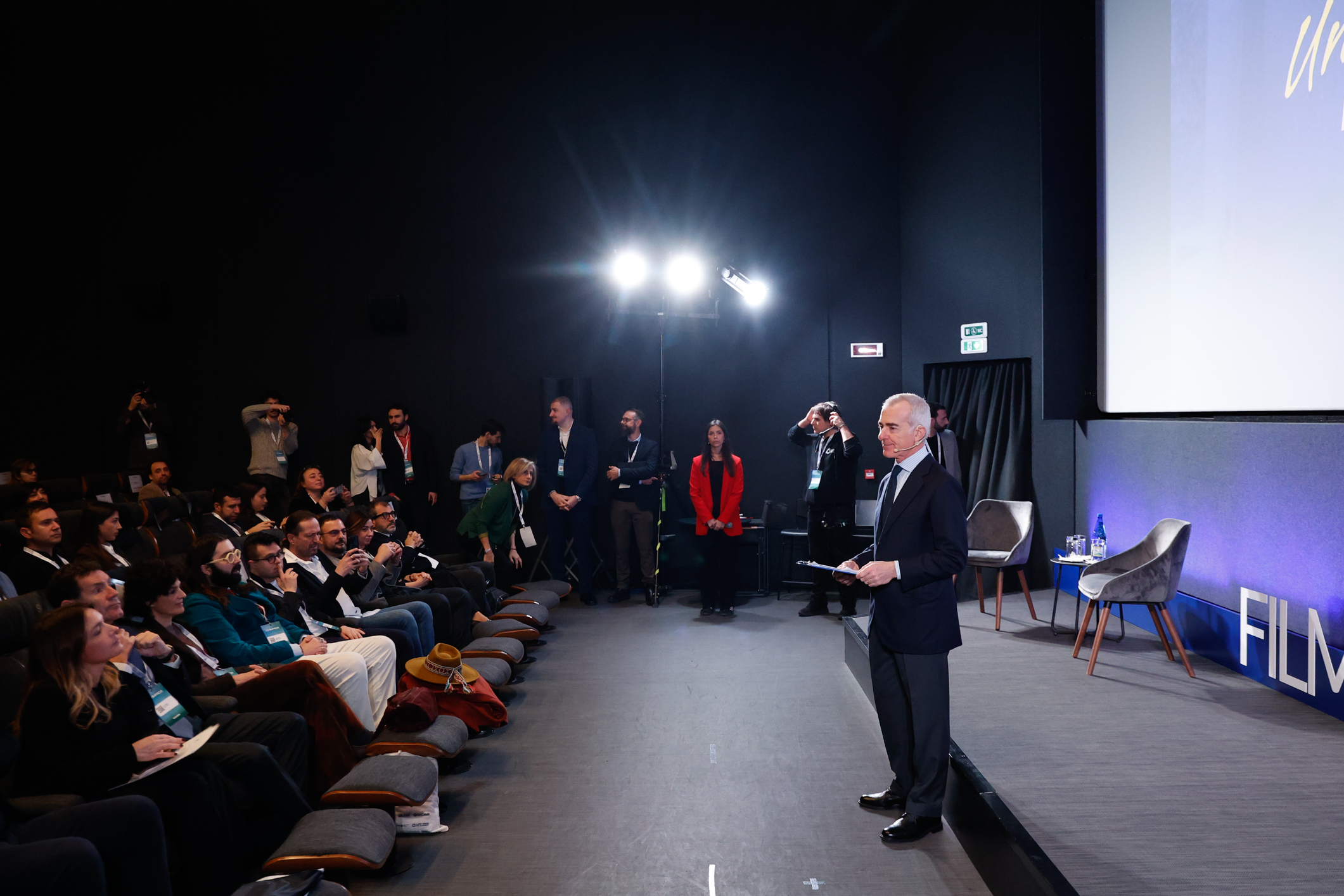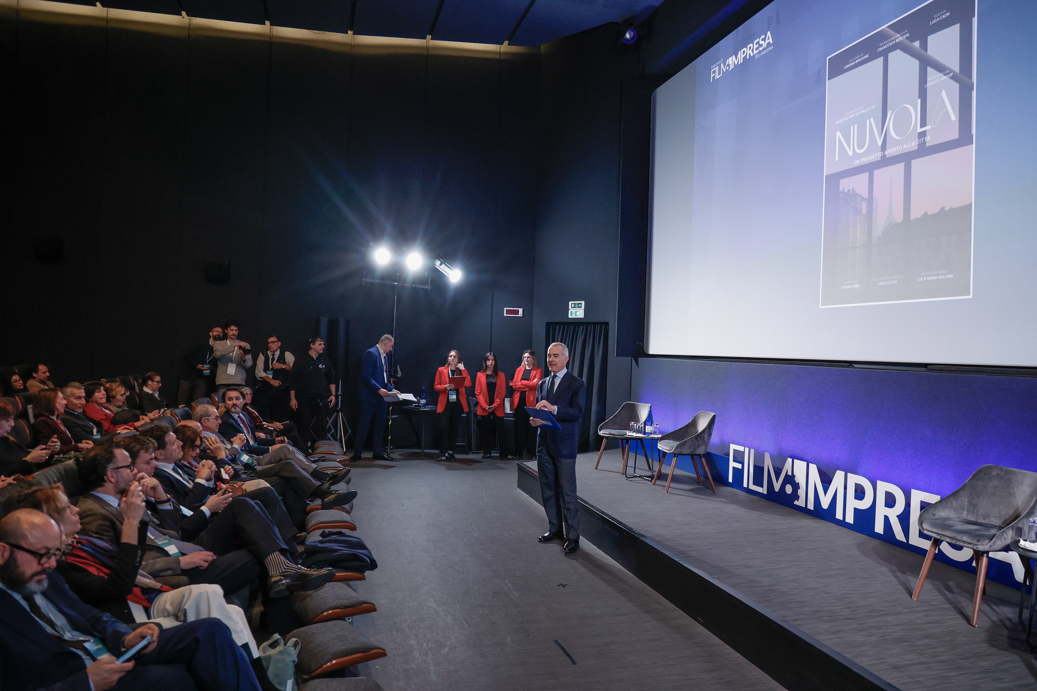 La proiezione è stata accompagnata da una conversazione che ha coinvolto Francesca Molteni e Antonio Calabrò, Presidente Gruppo Tecnico Cultura d’Impresa Confindustria, insieme ad Alessandra Bianco, Direttore Corporate Communication Gruppo Lavazza, Marco Gay, Presidente Unione Industriale Torino, e Maurizio Tarquini, Direttore Generale Confindustria, animata da Giampaolo Letta e Mario Sesti.