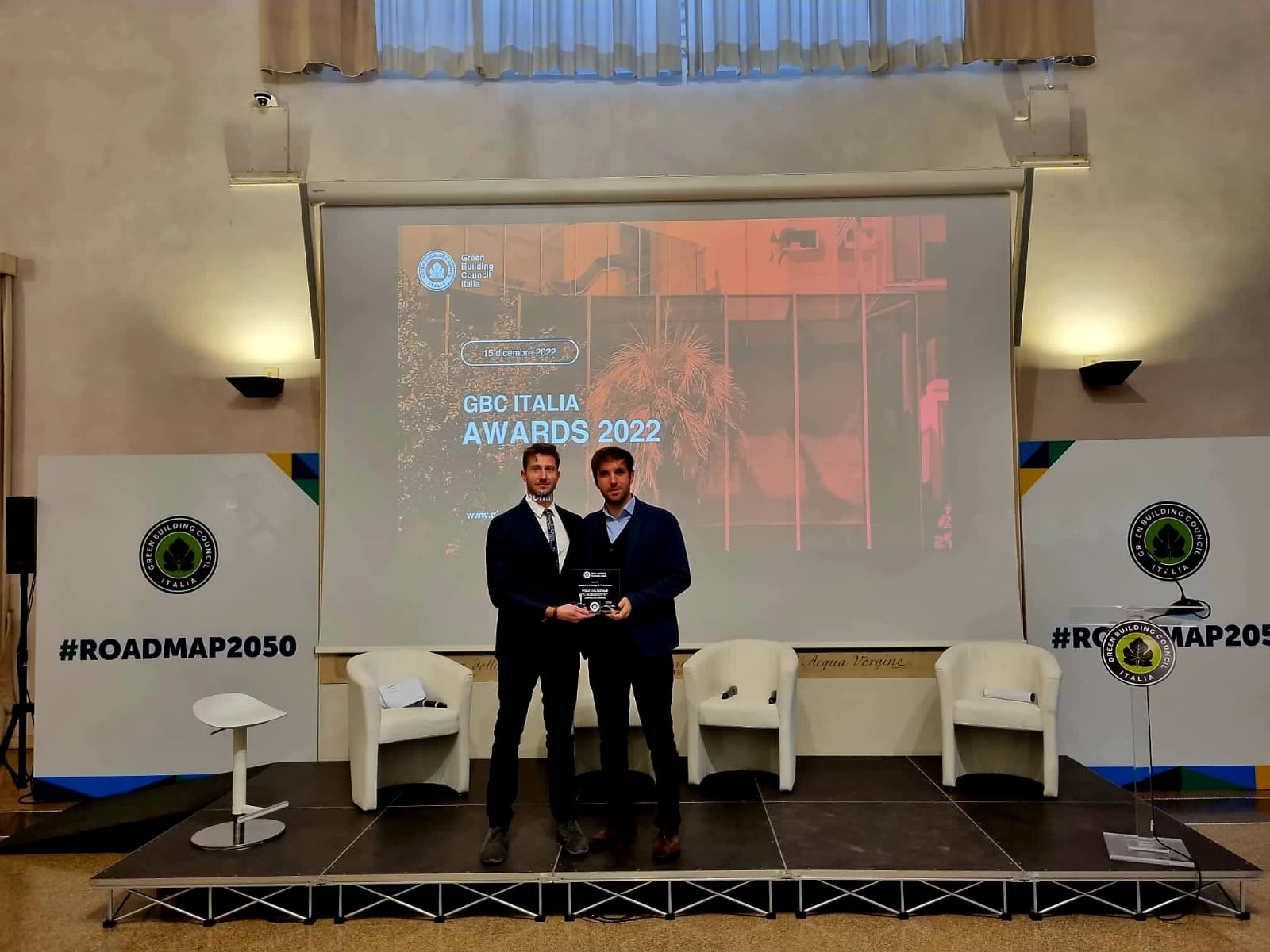 La cerimonia di premiazione si è svolta a Roma presso Palazzo Poli e, all'interno dell'evento, GBC Italia ha presentato la prima Roadmap italiana per la decarbonizzazione e la trasformazione sostenibile in edilizia, che vuole essere una chiamata diretta alle istituzioni e alle imprese per raggiungere con successo gli obiettivi di sostenibilità e circolarità al 2050, in linea con le ambizioni del Green Deal europeo e dell'Accordo di Parigi.