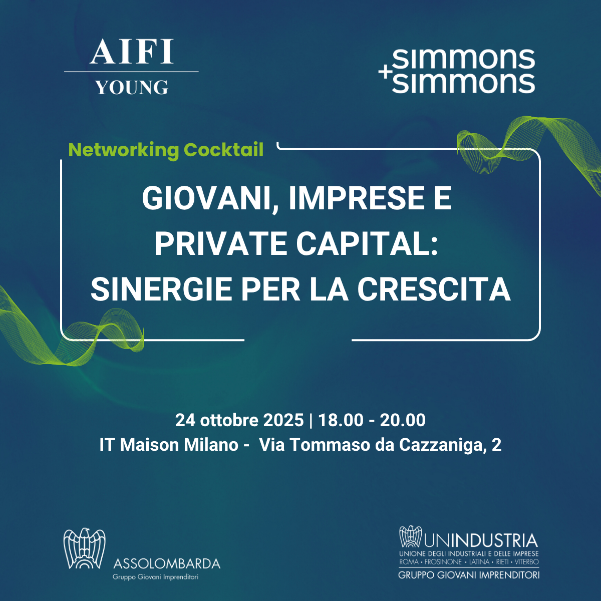 A seguire, dalle ore 18.00, l’evento con AIFI Young “Giovani, Imprese e Private Capital: sinergie per la crescita” che si terrà presso IT Maison Milano in Via Tommaso da Cazzaniga, 2.