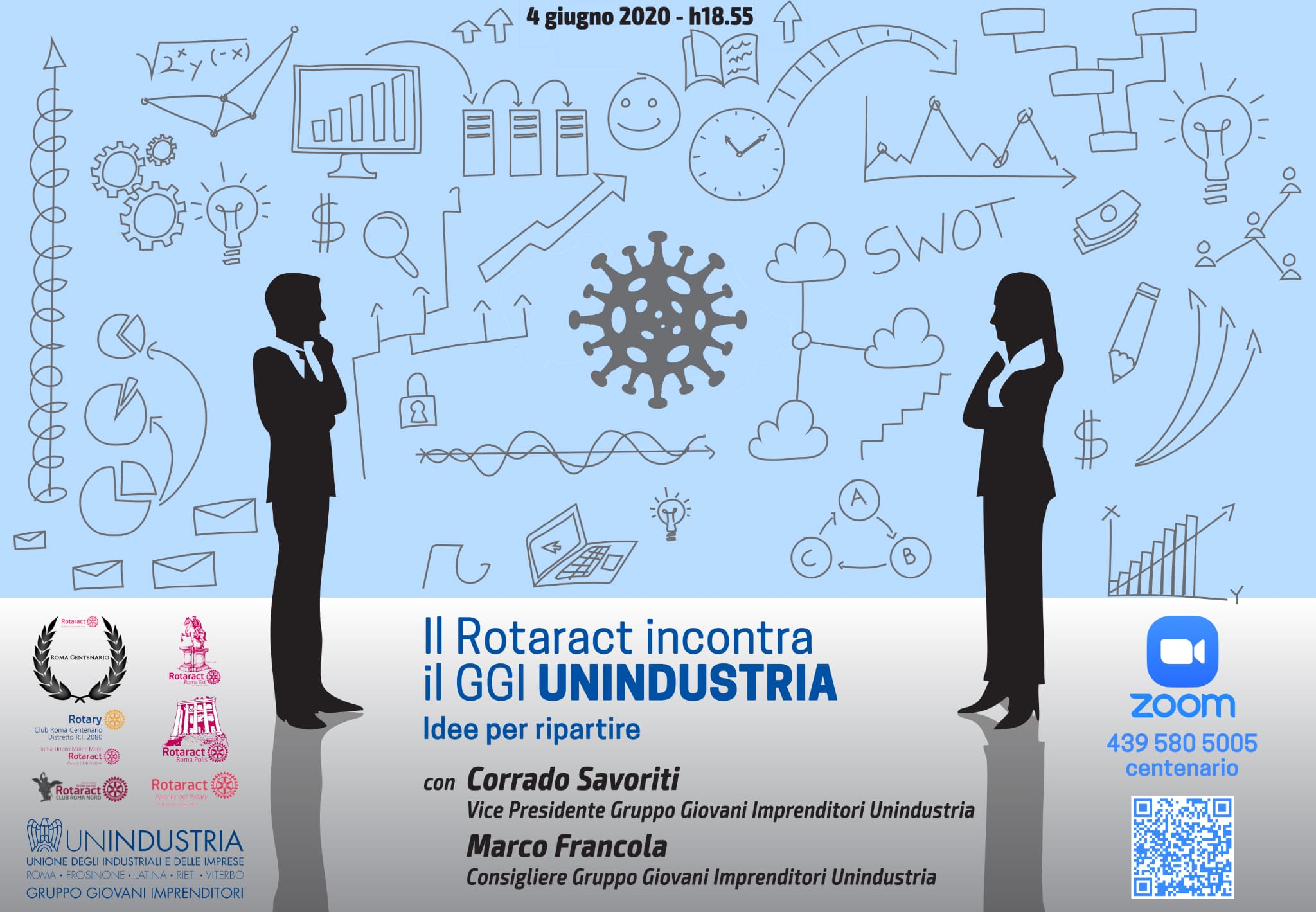Nell'ambito delle sinergie attivate con le altre Associazioni giovanili del territorio, il prossimo giovedì 4 giugno il Gruppo Giovani Imprenditori di Unindustria parteciperà ad un appuntamento, organizzato dal Rotaract Roma Centenario insieme agli altri gruppi territoriali, in cui saranno affrontati in ambito produttivo i temi dell'impatto del Covid-19 sulle imprese, delle problematiche riscontrate dalle aziende e delle possibili opportunità derivanti dalla crisi. Tra i relatori per il Gruppo Giovani Imprenditori di Unindustria parteciperanno il vice presidente GGI Corrado Savoriti e il consigliere Marco Francola.