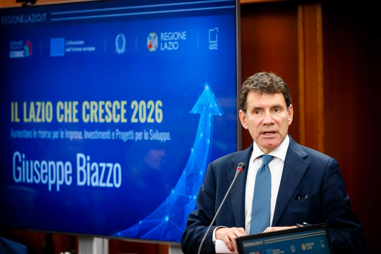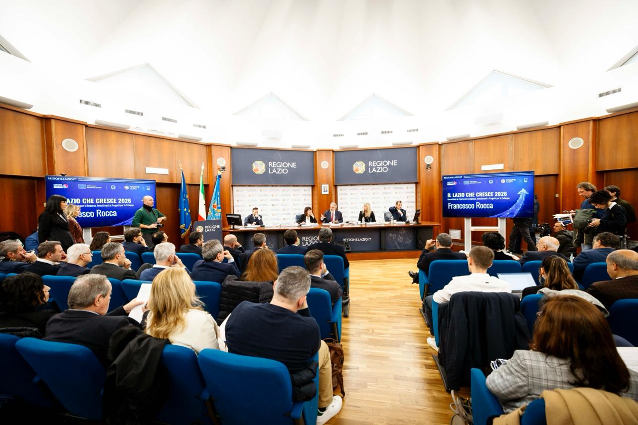 Oggi venerdì 16 gennaio 2026, alle ore 12:00 presso la Sala Tevere della Regione Lazio in via Cristoforo Colombo 212, a Roma, la Regione Lazio ha presentato Il Lazio che Cresce 2026”, un evento dedicato all’illustrazione dello stato di avanzamento del Programma FESR 2021-2027 e delle misure che la Regione metterà in campo nel biennio 2026-2027 per sostenere il sistema produttivo regionale.