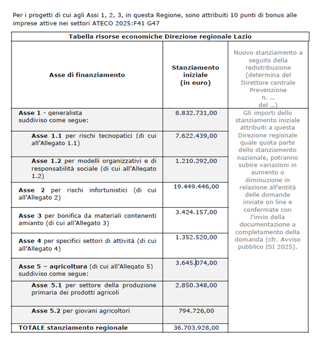 Pubblicato il Bando ISI INAIL 2025 che ha l’obiettivo di incentivare le imprese alla realizzazione di progetti per il miglioramento dei livelli di salute e sicurezza sul lavoro.