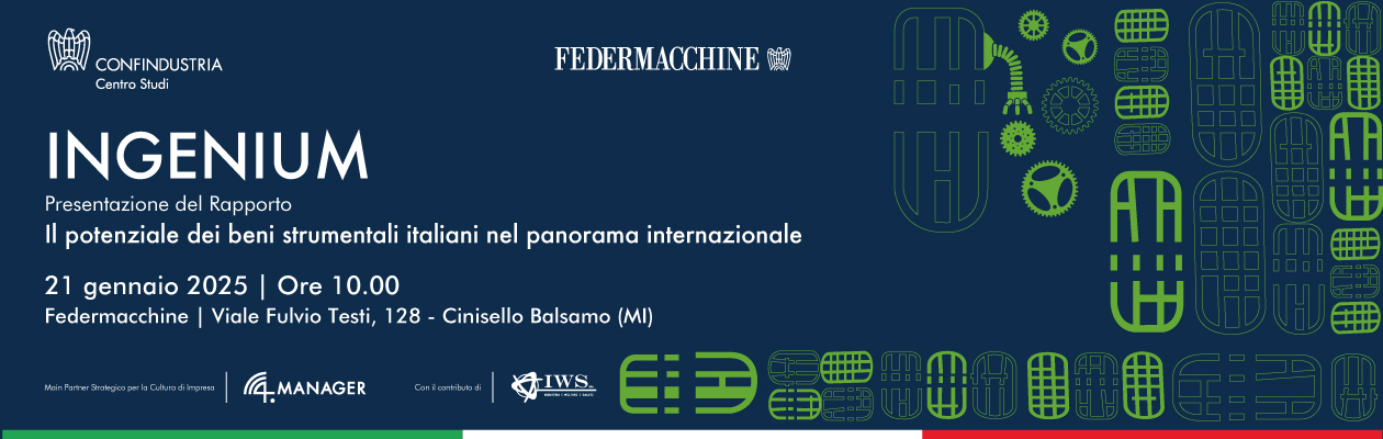 Il prossimo 21 gennaio alle ore 10:00, presso la sede di Federmacchine Viale Fulvio Testi, 128  - Cinisello Balsamo, si terrà la presentazione della II edizione del Rapporto INGENIUM, realizzato dal Centro Studi Confindustria.