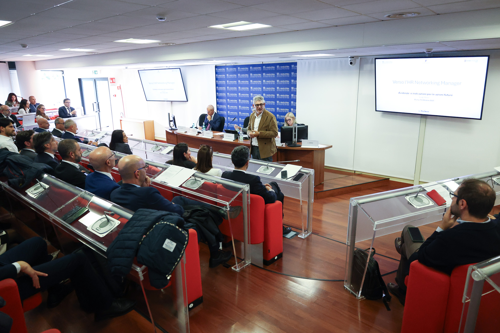 L'evento finale del progetto "Verso l’HR Networking Manager", tenutosi il 15 ottobre 2025 presso la sede di Unindustria a Roma, ha rappresentato il termine del progetto e un momento cruciale di sintesi, confronto e validazione del nuovo profilo HR. L'incontro ha visto la partecipazione e il coinvolgimento dei due Gruppi Tecnici Capitale Umano e Lavoro e Relazioni industriali di Unindustria ed è stata un’occasione di confronto e verifica della bontà scientifica del progetto, che ha coinvolto oltre 30 aziende le quali in maniera privilegiata hanno dato il loro contributo al tema di confronto. Lo scopo era valorizzare i risultati e ridefinire il ruolo HR in chiave di rete e innovazione. L’evento ha ribadito la centralità del dialogo e della contaminazione tra esperienze e best practice aziendali come elemento fondante del nuovo paradigma manageriale.