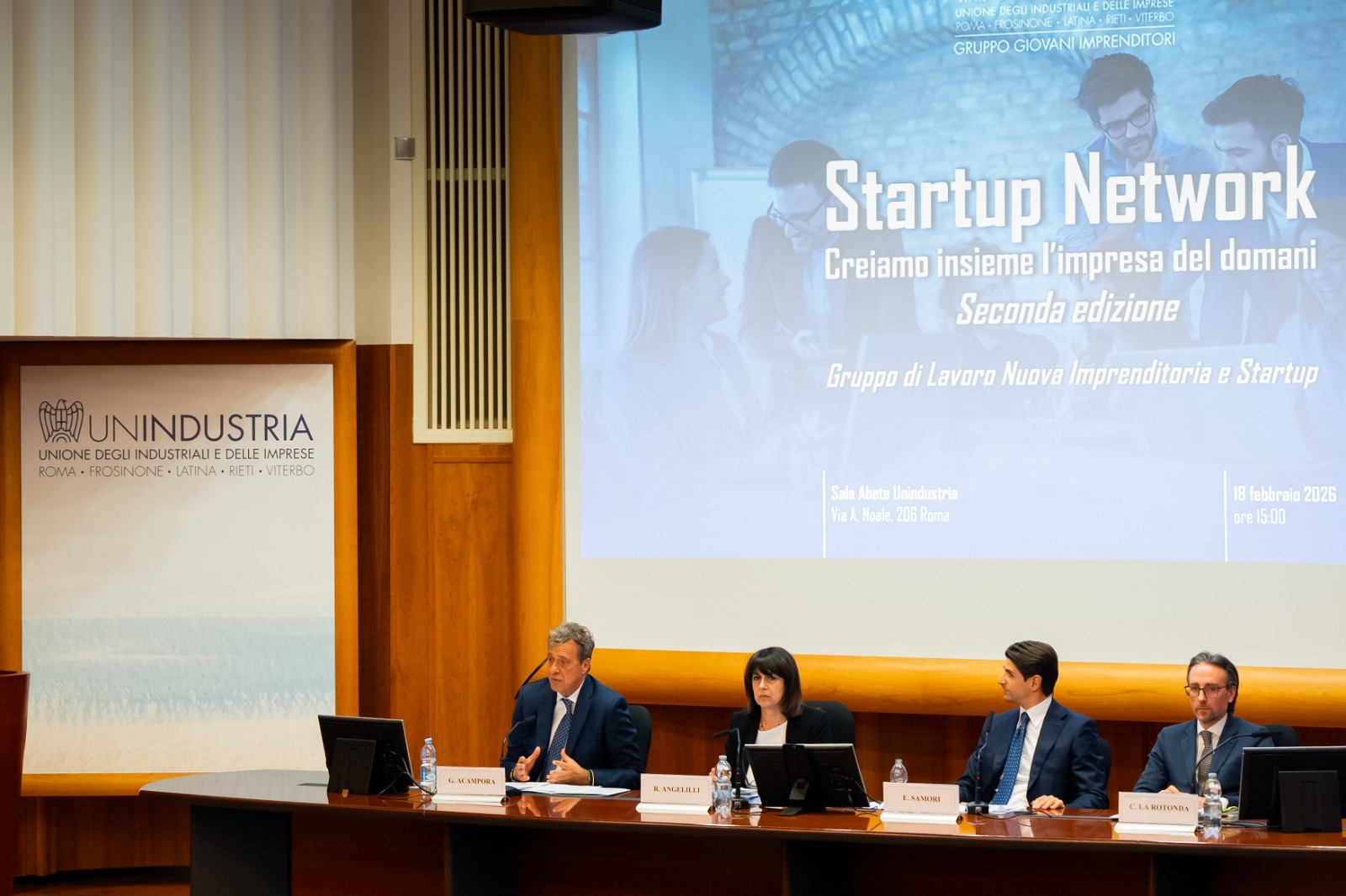 All’evento sono intervenuti oltre a Eugenio Samori Presidente del Gruppo Giovani Imprenditori di Unindustria, anche la Vicepresidente della Regione Lazio Roberta Angelilli, il Presidente della Camera di Commercio di Frosinone Latina Giovanni Acampora e Carlo La Rotonda, Direttore di RetImpresa.