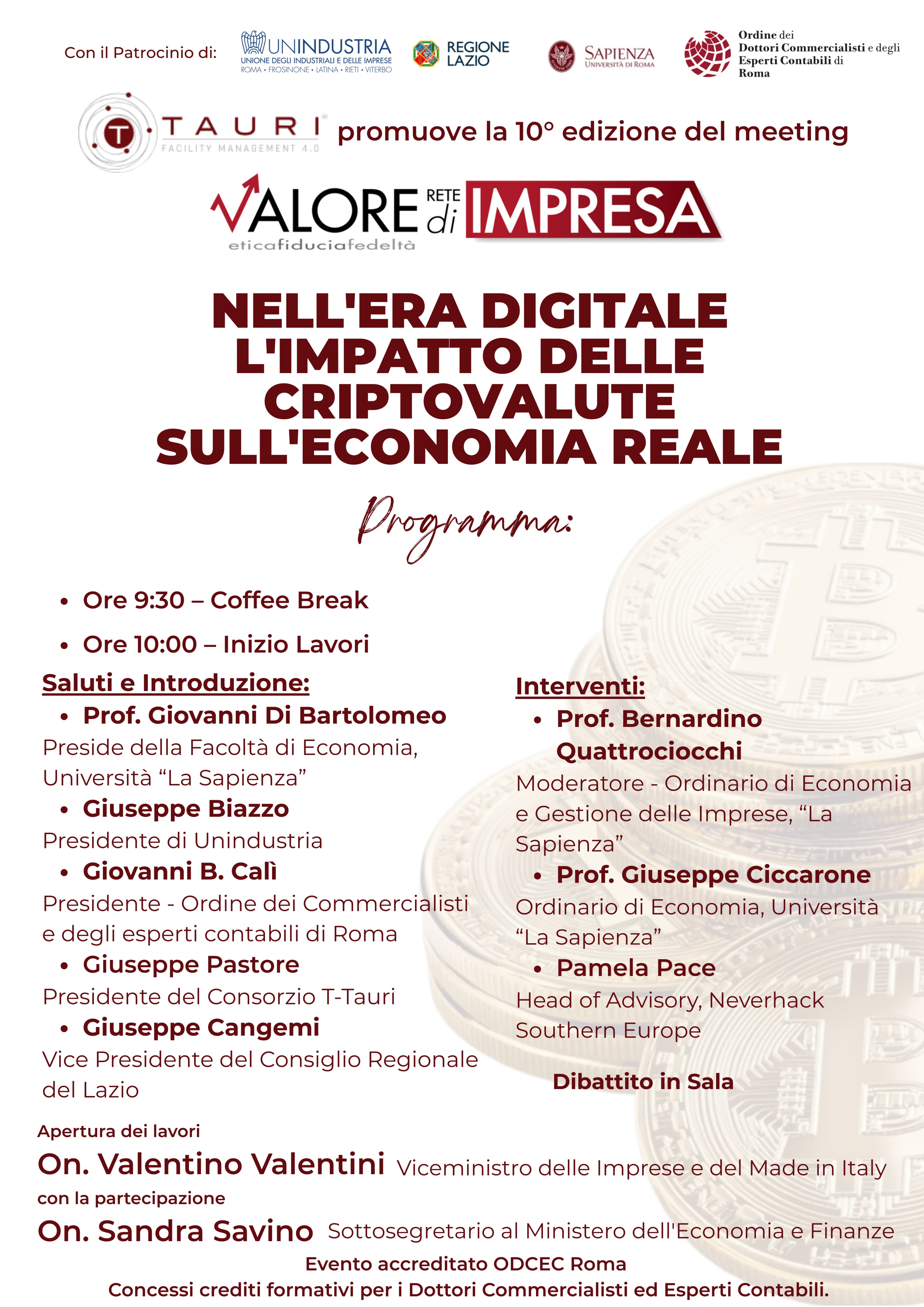 Convegno di Valore Rete di Impresa X edizione e con il patrocinio di Unindustria - giovedì 15 maggio ore 10.00 presso l’Università La Sapienza di Roma