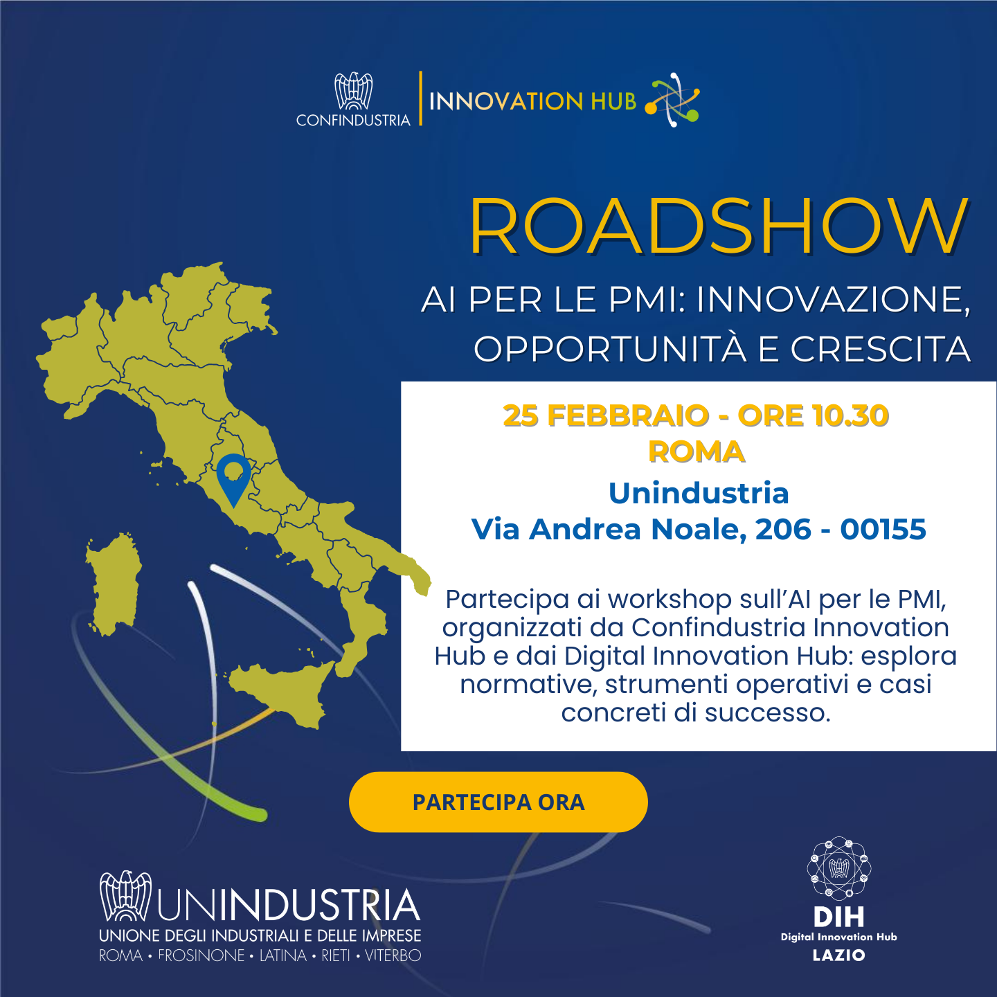 Il Roadshow ConfINHub arriva a Roma, realizzato in collaborazione con Unindustria, il Digital Innovation Hub Lazio e Sistemi Formativi Confindustria, per un confronto concreto su Intelligenza Artificiale, dati e trasformazione digitale.