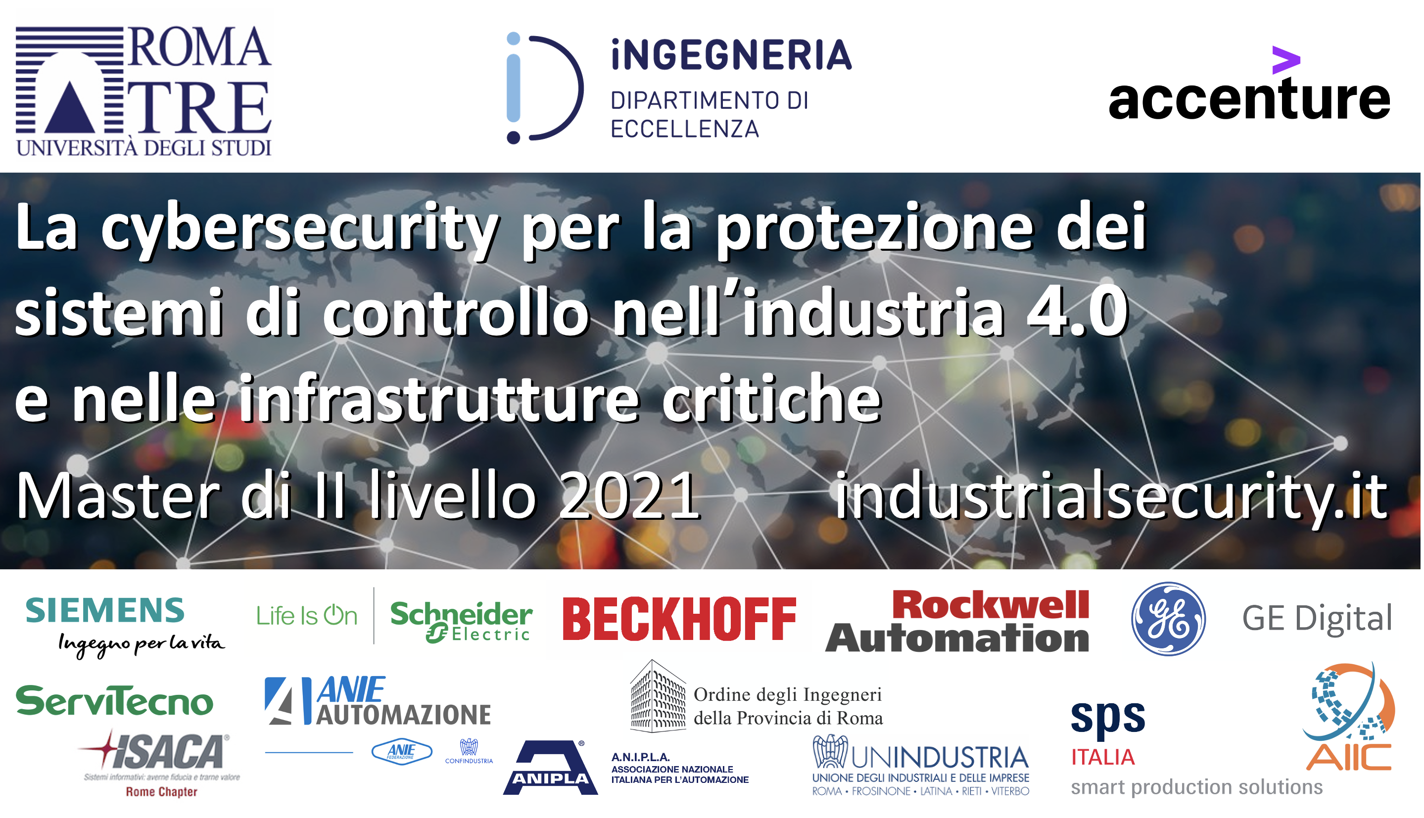 Il Master, dunque, intende formare la figura di un esperto nella progettazione e gestione dei sistemi preposti alla tutela della sicurezza e alla protezione del patrimonio informativo e architetturale dei sistemi di controllo industriale e per le infrastrutture critiche.