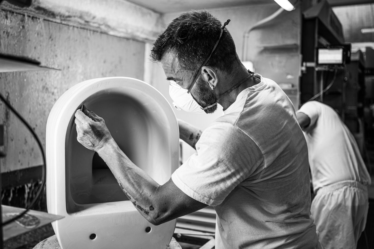 All’epoca la produzione degli articoli sanitari era ancora artigianale. Venivano realizzati a mano dal ceramista con l’ausilio di poche attrezzature ed erano cotti nelle fornaci alimentate a legna. Negli anni 1962, 1972 e 2007 lo stabilimento originario subisce trasformazioni e ampliamenti ed anche i sistemi di lavorazione si evolvono, seguendo le innovazioni tecnologiche del settore.