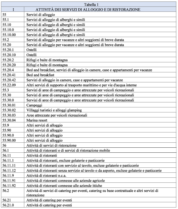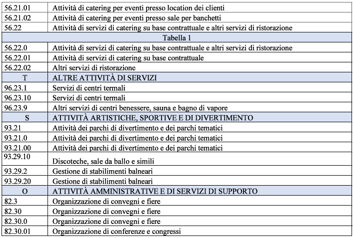 Possono presentare domanda le imprese con i seguenti codici ATECO